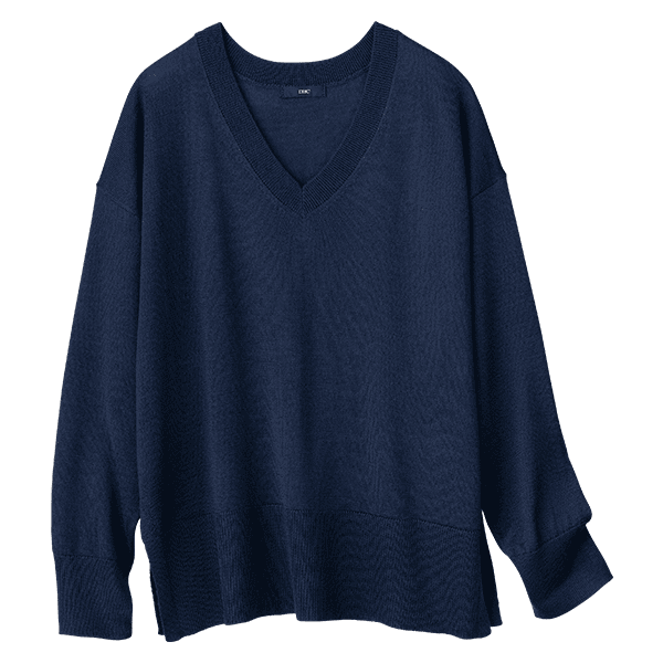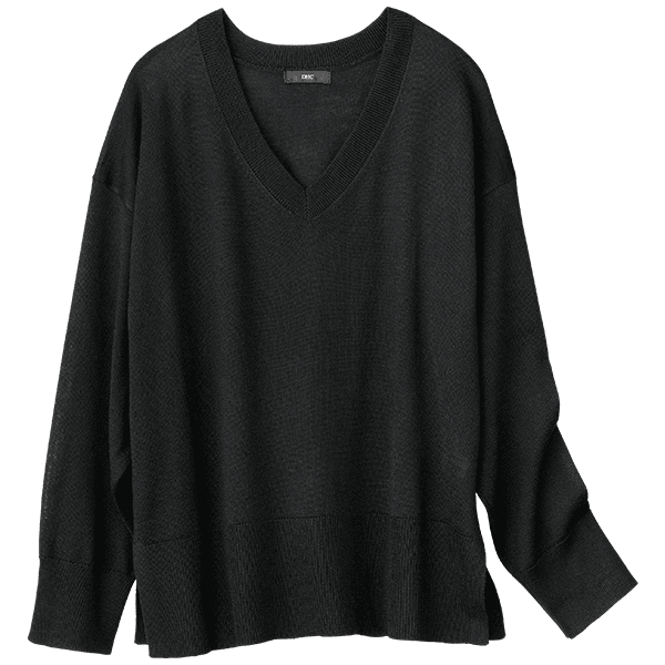 首回りすっきりで顔映えと優美さをプラスした、洗濯機で洗えるお手入れラクなVネックニット。シャープな印象のVネックに身幅広めのシルエットで身体のラインが出にくく、リラックス感のある一枚です。オン・オフ問わず様々なシーンで活躍するシンプルさで、美しいコーデを楽しんで。