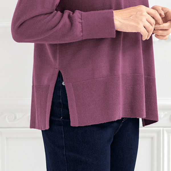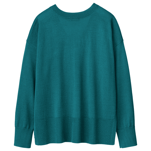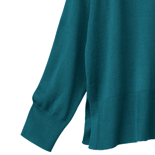 目の細かい繊細な編地で品よく着られます。洗濯機(ネット使用)OKなのでデイリーに気兼ねなく着られるのもうれしいです。深めのスリットがスッキリスタイリッシュに見せてくれ、1枚で決まる便利ニットです。さりげなく体型カバーもできるゆとりある身幅です。