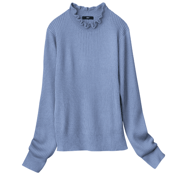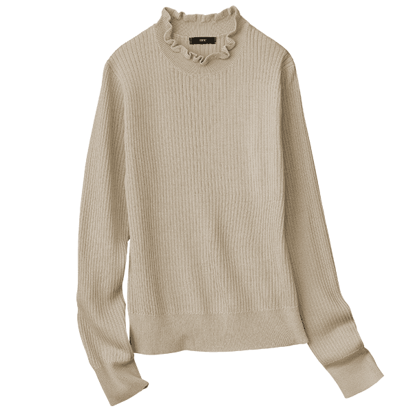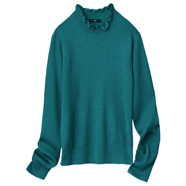 イタリア糸・洗濯機で洗えるフリルハイネックニット(EM)