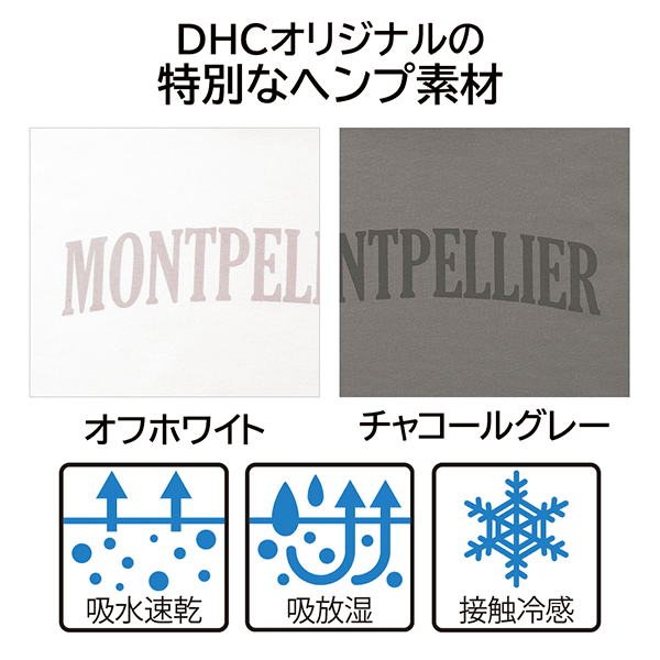 麻ならではの吸放湿性の高さでさわやかな着心地のヘンプ素材は、リネンよりもやわらかくチクチク感が少ないので肌になじんで心地よいのが特長。吸水速乾、接触冷感機能付きで、真夏でも涼しく快適。ほどよい厚みで透けにくいのも安心です。
