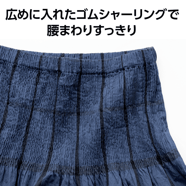 シャーリングですっきり見え♪体型カバーがかなう軽やかで涼しいスカート