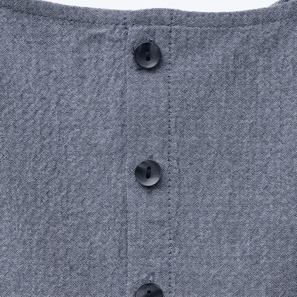ハリのある綿混生地でゆったり着られます。後ろのボタンを外さなくてもすぽっと着られました。