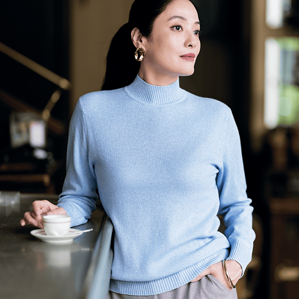 カシミヤと天然シルクを使用!着ぶくれせずあたたかな上質ハイネックニット