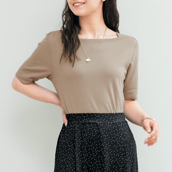 吸放湿性に優れた素材でムレにくく快適!二の腕をカバーする上品カットソー