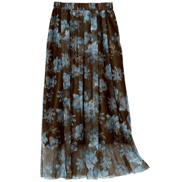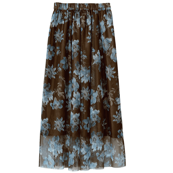 繊細なチュールがボリューム感たっぷりな主役スカートです。ひざ下まで裏地があるので、一枚で履けて、透け感も楽しめるのも魅力です。ウエストゴムで着心地はとても良いです。チュールなので重さも気になりません。