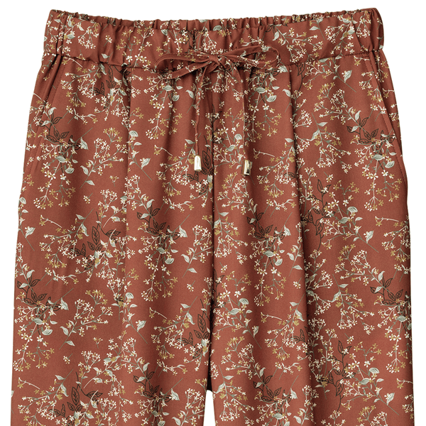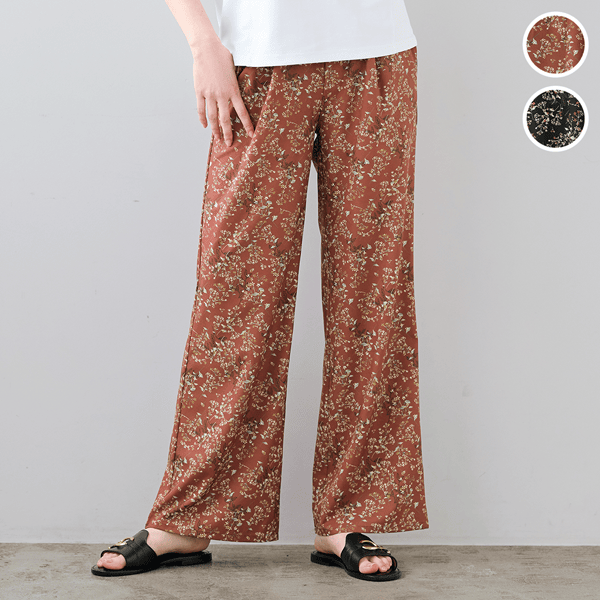 華やかな花柄とほどよいゆとりで美脚見え!さらりと涼やかな速乾パンツ