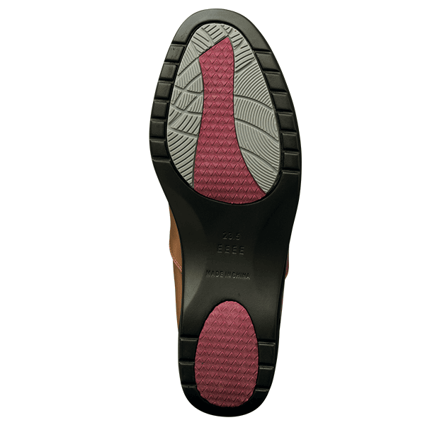 靴のマエストロの木型で作った外反対策の美しい靴。今回、DHCの外反に悩むお客様のために靴のマエストロとも称される山崎毅先生に外反対策の木型を作っていただきました。足の甲にフィットして安定させ、つま先を広く設計することで、骨が靴に当たらないよう計算されています。その履き心地のよさは、まさに先生の信念が詰まった一足。外反に対応したアーチを『支えて』つま先を『ゆるめる』オリジナル木型を開発し、外反のお悩みを軽減。ノンスリップ(防滑仕様)でエアークッションが歩行時に衝撃を吸収するオリジナルソールを開発し、歩きやすく・疲れにくさを追求しました。足裏の熱を逃しやすいミゾ入りの低反発インソールでさらに快適さをプラスしてくれます。
