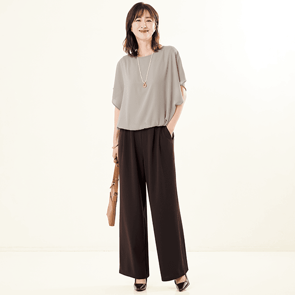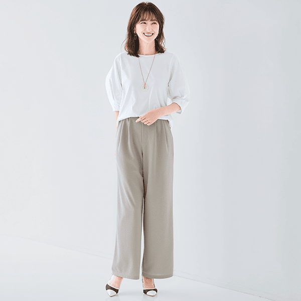 着るだけでやせ見え!イージーケアがうれしい脚長効果抜群のワイドパンツ