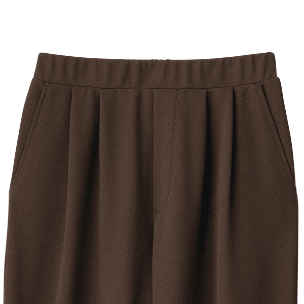 徹底的にやせ見えにこだわったパンツは、シンプルなデザインで着まわし力も抜群。ジャージーながらきちんと見える2WAYストレッチ素材で、ストレスフリーでキレイにはけます。ツータックがつくるドレープが縦ラインを強調しすっきりと見え、脚長効果も。シワにならず、洗濯機で洗えてお手入れかんたんなのでヘビロテ間違いなし!