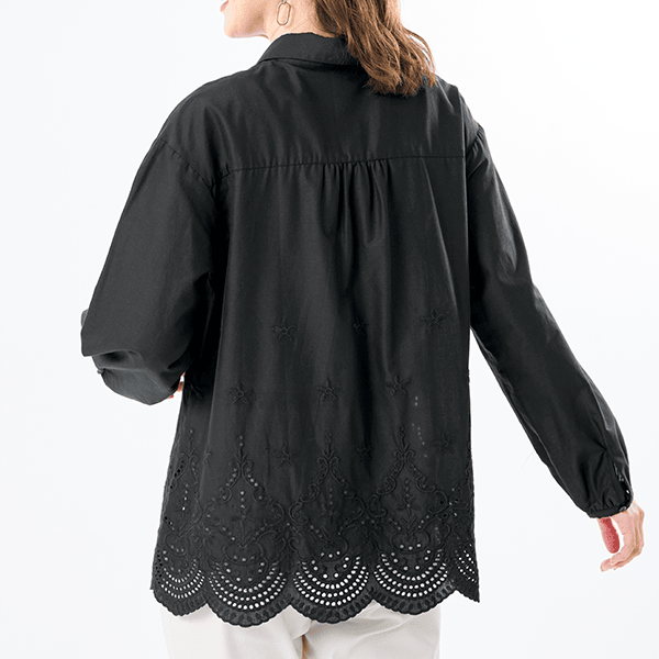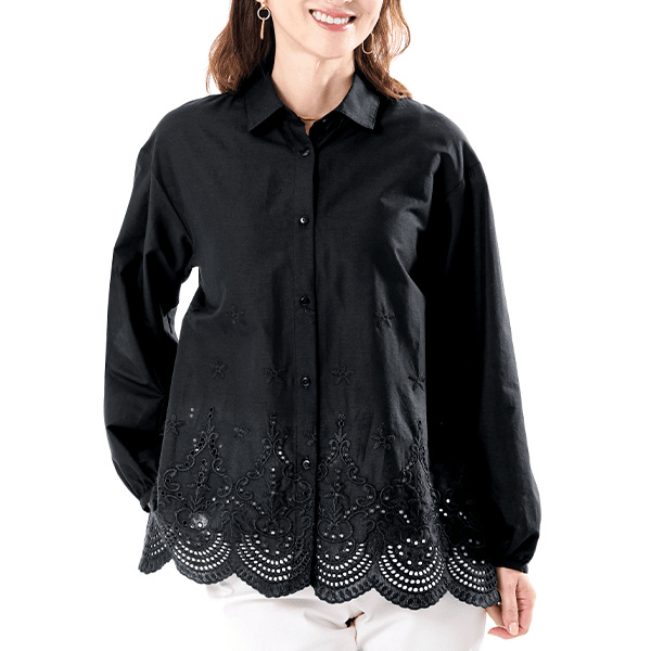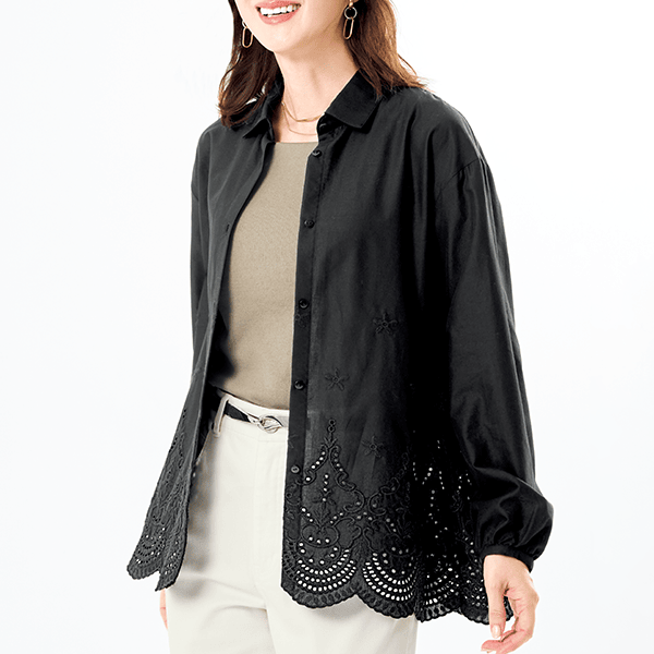 日中は夏の暑さ、朝晩は肌寒さを感じるこの季節。そんな気まぐれな気候にも対応できる、快適さとおしゃれを両立した刺しゅうオーバーシャツ。スカラップ刺しゅうが目を引き、カジュアルにも上品にも着られます。1枚ではもちろん、オーバーサイズで羽織りにも最適です。シャツにスカラップ刺しゅうをほどこすことで、甘くなりすぎず洗練された印象で着こなせます。
