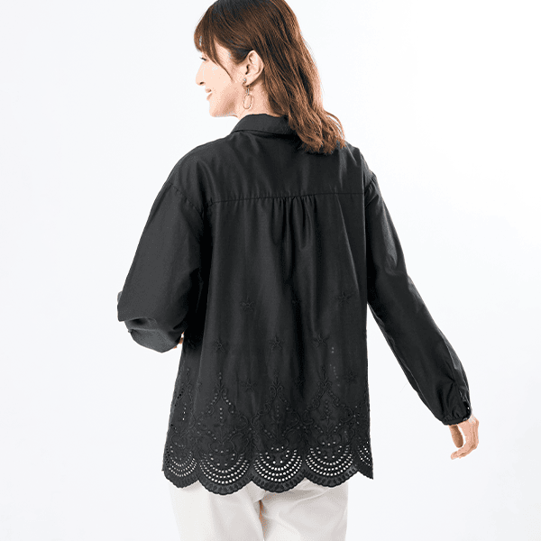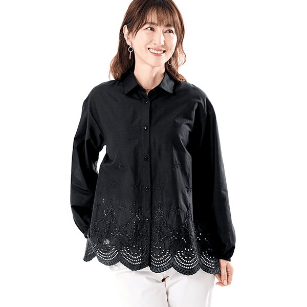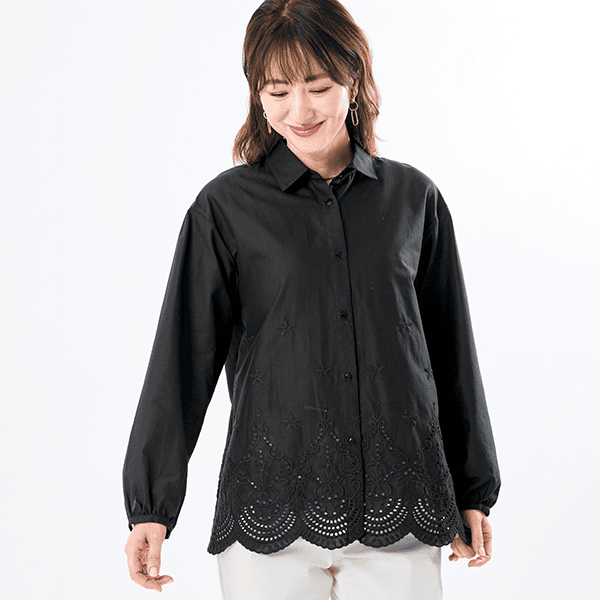 日中は夏の暑さ、朝晩は肌寒さを感じるこの季節。そんな気まぐれな気候にも対応できる、快適さとおしゃれを両立した刺しゅうオーバーシャツ。スカラップ刺しゅうが目を引き、カジュアルにも上品にも着られます。1枚ではもちろん、オーバーサイズで羽織りにも最適です。シャツにスカラップ刺しゅうをほどこすことで、甘くなりすぎず洗練された印象で着こなせます。