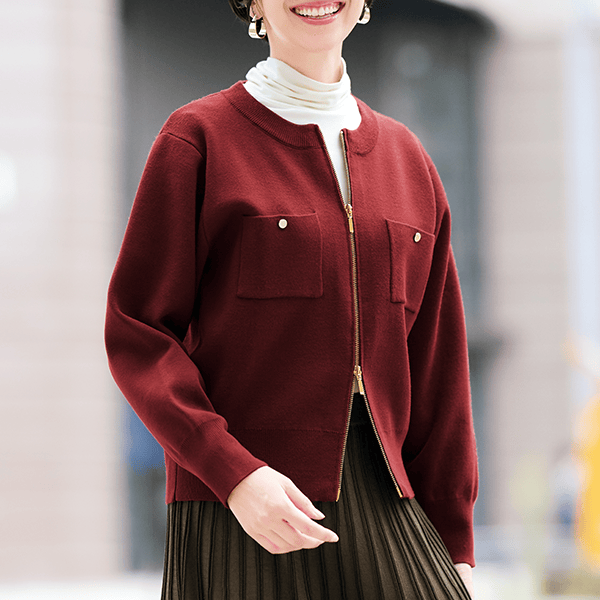 アウターでも1枚着でもロングシーズン楽しめる、やわらかく動きやすいふっくら肉厚なニットジャケット。ダブルファスナーで着こなしは自由に調整できます。きちんと感と着心地を両立するミラノリブは、イタリア・ミラノを発祥とする、ハリと適度な厚みを持つ目が詰まった編み地。ニット特有ののびやヨレが少なく、しっかりしたシルエットが特長です。