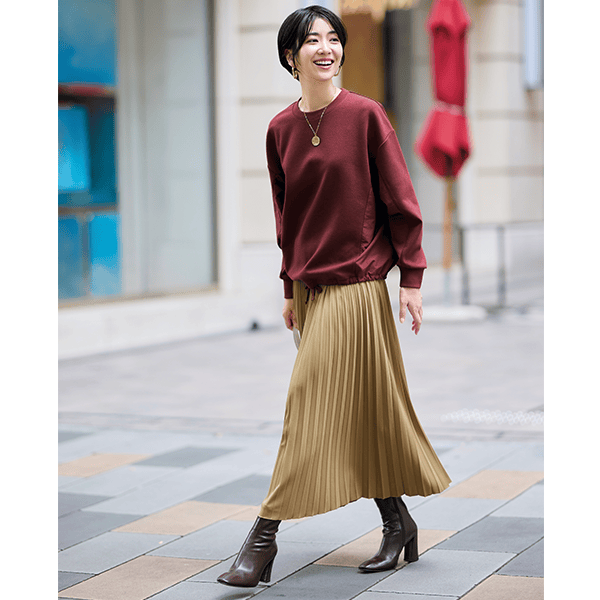 シワになりにくくお手入れラク♪美しいプリーツで細見えする着映えスカート