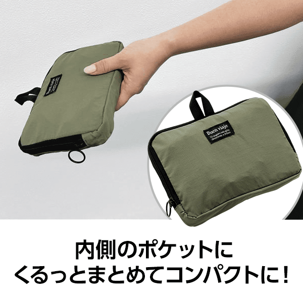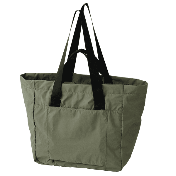 マット調ナイロンを使ったはっ水加工付きのポケッタブルトートが登場!内側のポケットにくるっとまとめればコンパクトになり、荷物が増えた時のサブバッグとしても活躍します。背面ポケットは底側のファスナーを開けるとキャリーのハンドルに差し込める、便利な2WAY仕様。軽くて丈夫なナイロン生地を使った天ファスナー仕様。