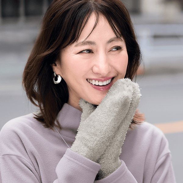 さっと装着できるミトン型として、5本指全部の指先を出して、2WAYで使えるファーのあったか手袋。フチにホール付きで5本指全部の指先を出せるから、装着したまま荷物の取り出しやスマホ操作ができます。伸縮性のあるあたたかいファー素材は着け心地抜群です。