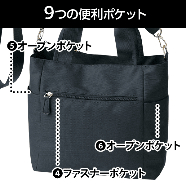 9つの便利ポケットとはっ水機能付き♪たっぷり入る北欧柄の2WAYトート