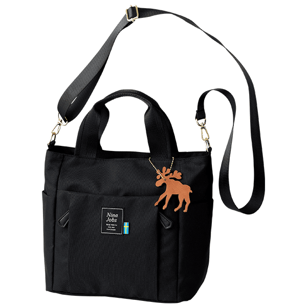 スウェーデン出身のプロダクトデザイナー、ニーナ・ヨブスデザインの柄を裏地にプリントした9つの便利ポケット付きトート。はっ水機能付きで、斜め掛けもできる2WAY仕様。横から出し入れできるポケットなど、全部で9つのポケットで分けて収納できて便利な機能派バッグ。たっぷり入って北欧柄が楽しい、北欧スウェーデンからの贈り物です。
