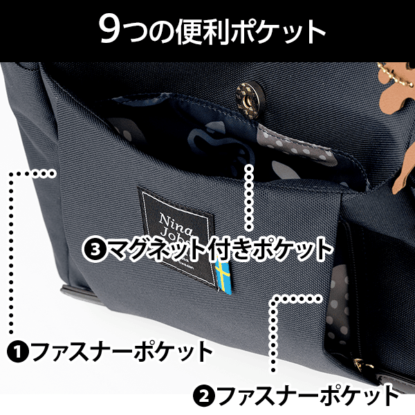 北欧柄・2WAY多ポケットトート(ニーナ・ヨブス)