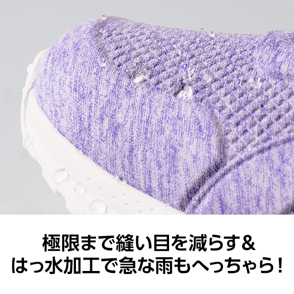 縫い目がないから水に強い!スポーティで明るい色と柄が歩行を元気にサポートする、超軽~い170gのスニーカー。はっ水加工で急な雨もへっちゃらな晴雨兼用でいつでも快適に過ごしやすく、毎日の元気履きを目指します。