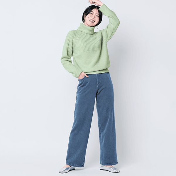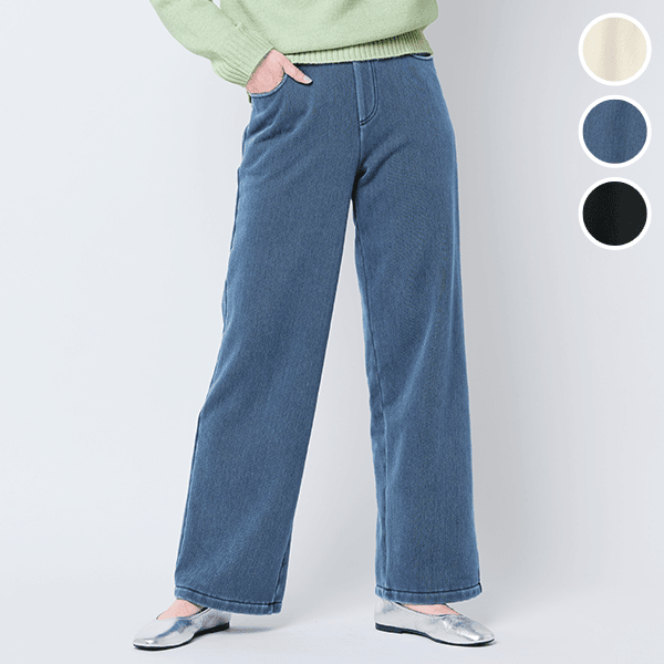 伸縮性抜群でラクチン!すっきり見えてあったかい裏ボアニットデニム
