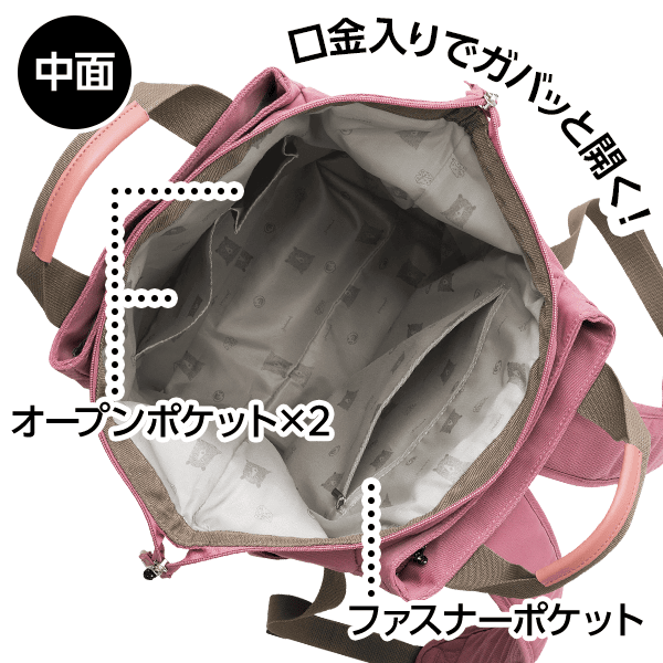 イギリスで誕生した“ジムボバート”のユーモラスであたたかみのある動物のイラストが特徴。たっぷりポケットの大容量リュックなので、いっぱい入ってプチ旅行やジム通いにも最適。本体の開閉は口金入りでパカッと大きく開き、荷物の出し入れがスムーズです。