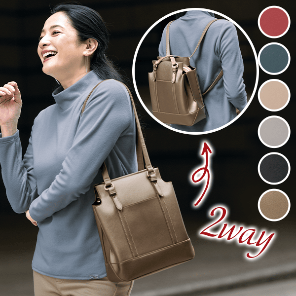 きちんと感のある合皮で収納力抜群!リュックに変身する2WAYショルダー