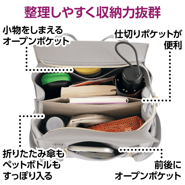 持ち手を引っ張るだけでリュックに変身する、大人気の2WAYショルダーにきちんと感のある合皮バージョンが新登場!中面に仕切りがあるので整理しやすく、収納力は抜群。ハリのある素材を使用しているので型くずれしにくく自立し、容量も従来よりアップ!厚着でも肩掛けがしやすい長さのショルダーで、重たくなりがちな冬の装いにもぴったり。