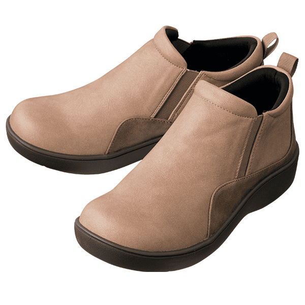 つま先ゆったりで歩きやすい、カジュアルで軽~いスリッポンブーツ。ショート丈の履き口が広いサイドゴアなので脱ぎ履きラクチン。つま先はゆったりワイズ3Eで幅広さんにうれしい履き心地です。アクセントのチェック柄インソールは履くたび楽しい。