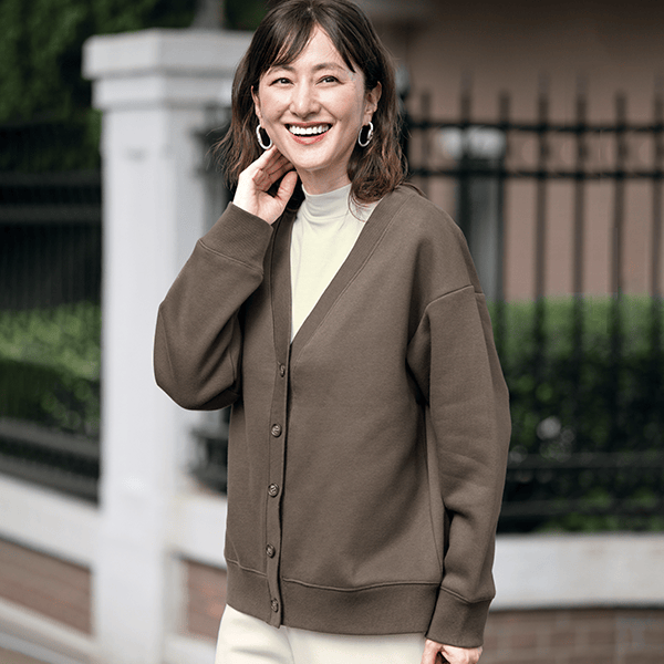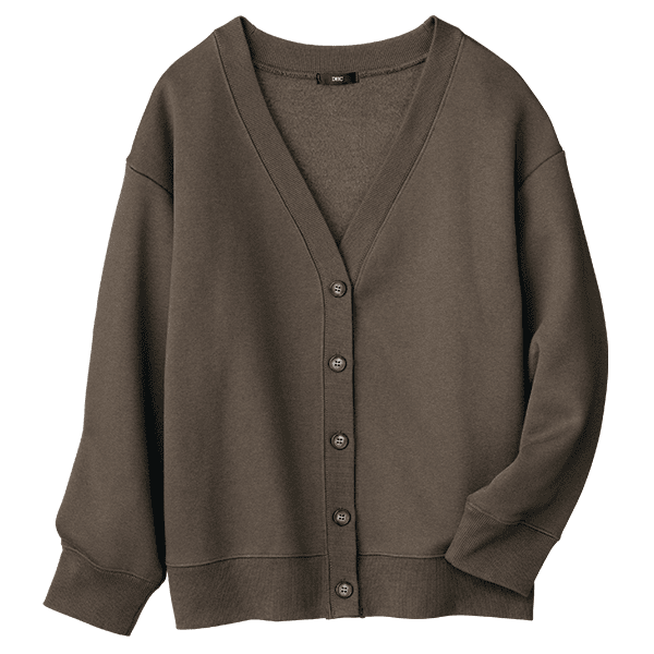 しっかり肉厚×裏起毛で超あったかい、大人のきれいめスウェットシリーズのゆったりカーディガン。保温性と防寒性に優れ、冬はアウターインとして、春も着られてロングシーズン活躍するヘビーウェイトの裏起毛スウェットカーディガンです。ゆったりとしたシルエットながらパンツにもスカートにも合う丈感で、バランスよく着られます。カーディガンとしてはもちろん、ボタンを閉じてプルオーバーとしての着用もおすすめ。