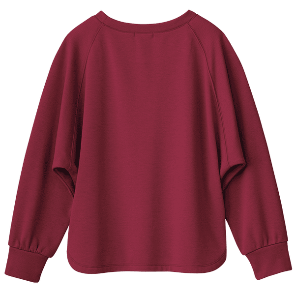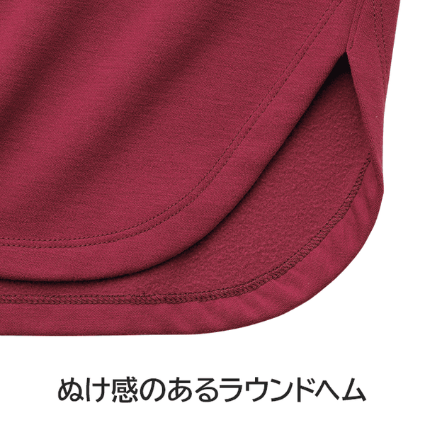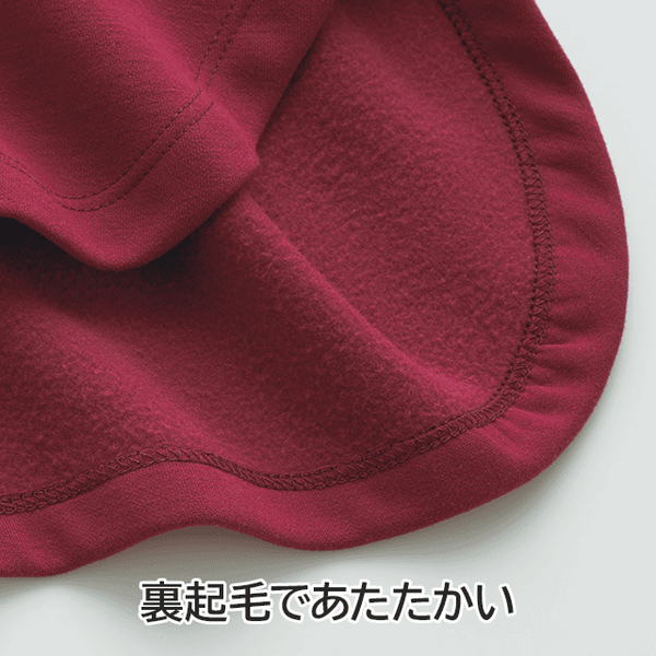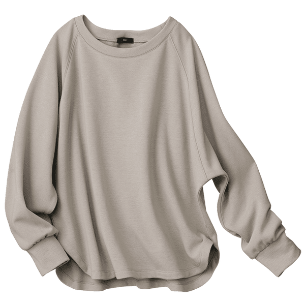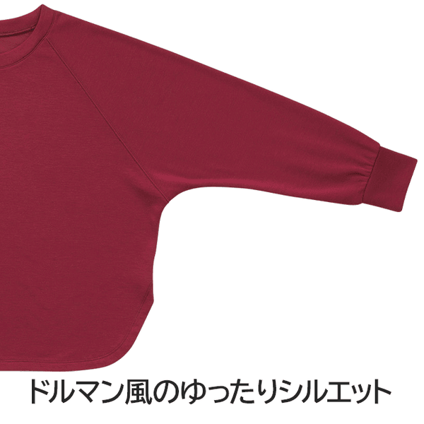 裏起毛であたたかく肌触りが気持ちいいです。ドルマン風のゆったりシルエットで動きやすくラクなうえに、レイヤードもしやすく、着回し力抜群です。
