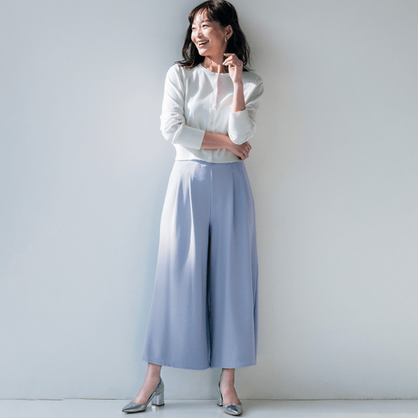 選べる2丈で裾上げ不要!ウエストゴムでラクチンなスカート見えする上品パンツ