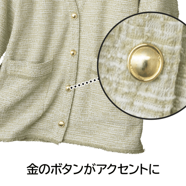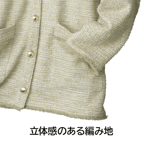 軽やかに羽織れてヒップまで隠せる安心丈!やわらかなツイード素材が上品なカーディガン