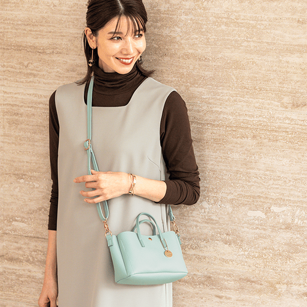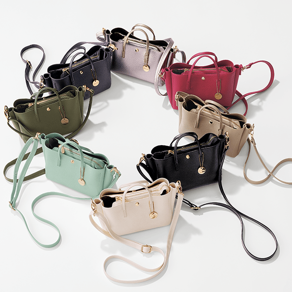 小ぶりながら想像以上の収納力と、横長で中身が見やすく出し入れもスムーズな、さっと手に取れる持ち手付きの2WAYコンパクトショルダー。3層式だから貴重品とすぐ取り出すものが分けられる。外ポケットはマグネット付きで、開きすぎを防ぎます。上品なコーデにもカジュアルコーデにも合わせやすい、アクセントになるきれいなカラバリをそろえました。
