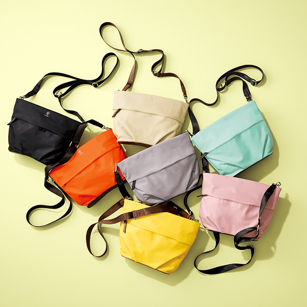 ミニマルなデザインで、どんなシーンでも持ちやすい収納力抜群のコンパクトショルダー。はっ水加工や、カギなどを付けられるカラビナ付きで機能面も充実。色違いで欲しくなるHAPPYカラーで楽しくお出かけできます。