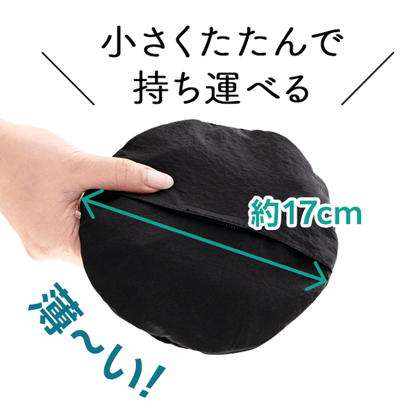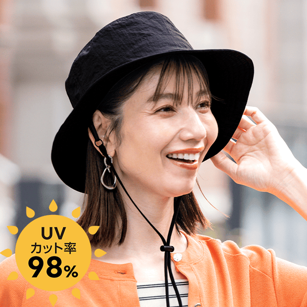 はっ水機能付きで急な雨もしのげて、UV対策もできる便利なポケッタブルハット。折りたたんで約17cmの小ささになるから、バッグに入れておくと安心です。あごヒモ付きで風が強い日も飛ばされるのを防げます。
