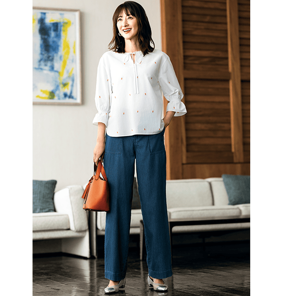 繊細なジャカード柄で着映えて気分も上がる、上質なトルコのジャカードブラウス。トルコのブルサは、オスマン帝国の時代から宮廷や貴族の衣装として繊細で上質な織物を生み出してきた街。今なお、生地の風合いや仕立ての美しさが息づいています。こちらのジャカード素材は刺しゅうとは異なり、肌側がなめらかになる繊細な技術。着心地も抜群です。胸元のリボンとキャンディスリーブで大人可愛く、長めの後ろ丈がさりげなくヒップをカバーしてくれます。