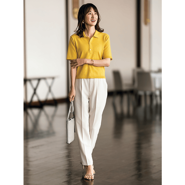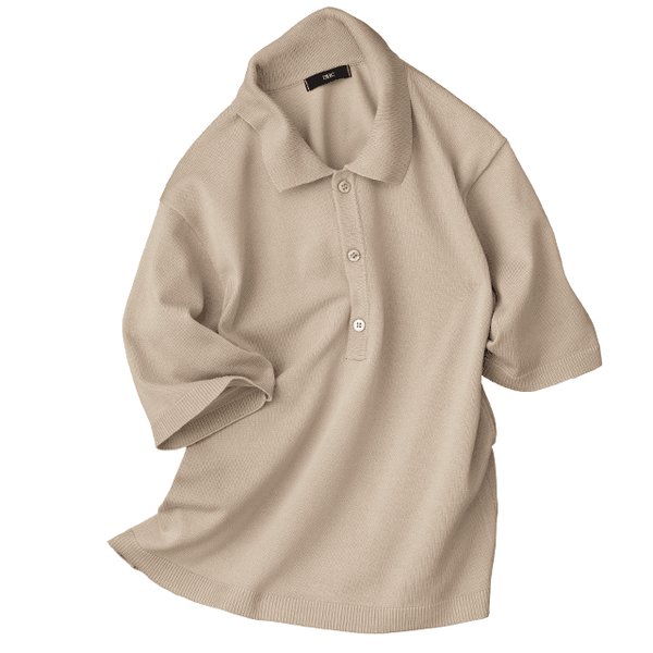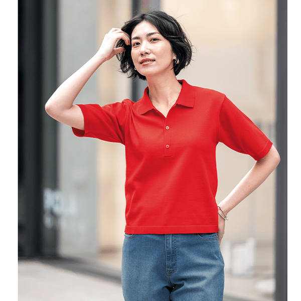 きちんと感と心地よさを両立!ほどよいゆとりで細見えがかなう大人のニットポロ