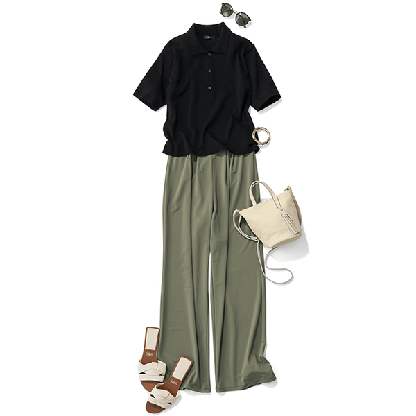 ワイドシルエットのボトムスと合わせて洗練された大人の上品カジュアルの完成