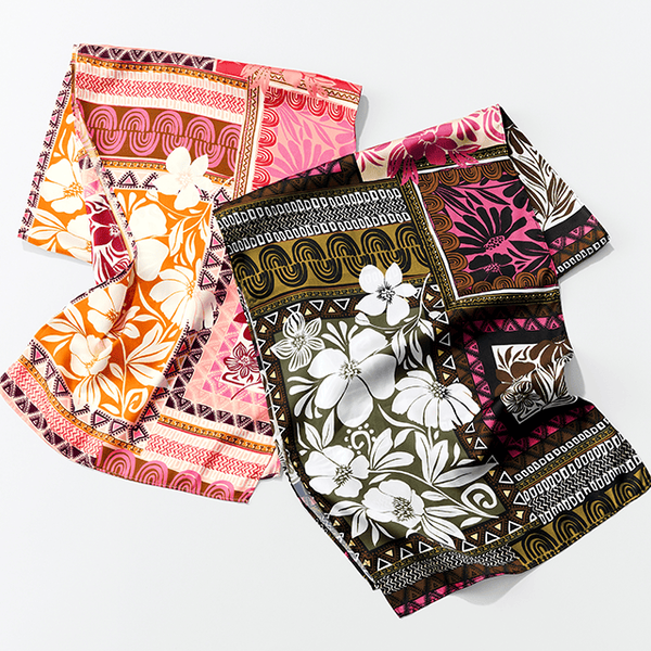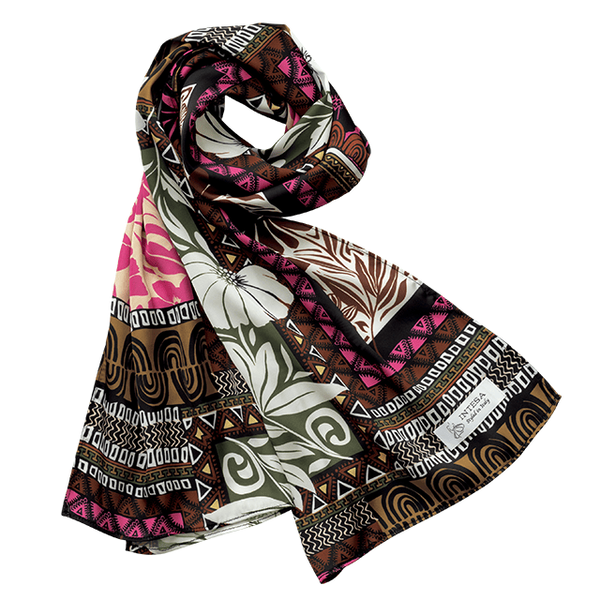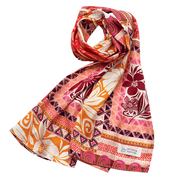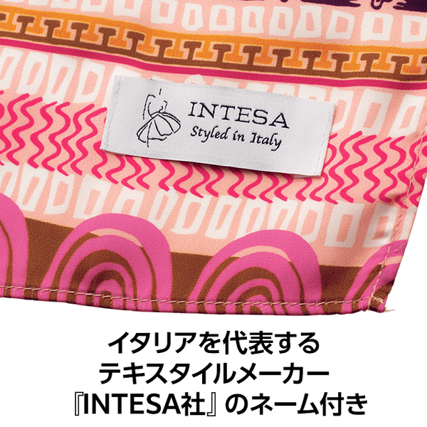 美しく艶やかな生地でオンオフ問わず活躍する、イタリアの洗練スカーフ。イタリアを代表するテキスタイルメーカー「INTESA社」の色彩豊かなプリント生地で仕立てたスカーフは、大人っぽい大胆な柄で首元に華やかさをプラスします。