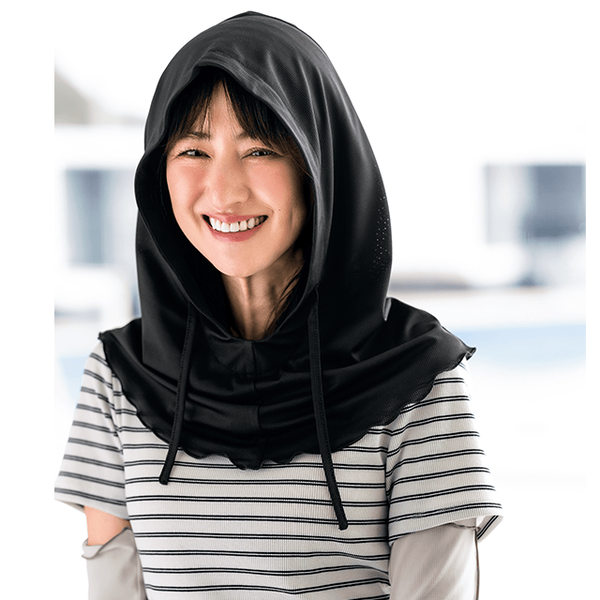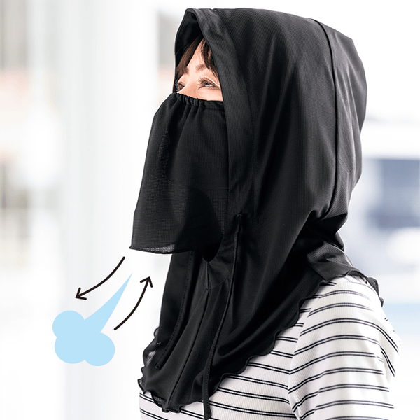 顔・髪・首を紫外線から徹底ガード!呼吸がしやすい2層構造のフード付きフェイスカバー