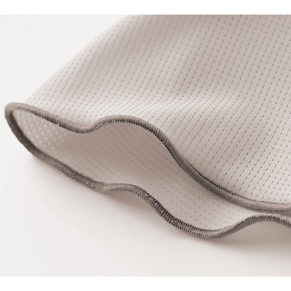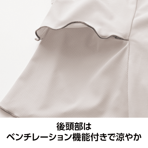 通気孔を開けた特殊な編み方で通気性抜群のジャージーです。接触冷感機能付きのさらりとした肌触りです。呼吸のしやすいマスク仕様はそのままに「後頭部が意外と暑かった」というスタッフの声から、今年はベンチレーション機能を付けて快適性がさらに向上しています。小さく畳めて嵩張らないので、持ち運ぶならパーカーよりもフェイスカバーがお薦めです。