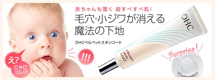 『DHCベルベットスキンコート』は、小ジワや毛穴、ニキビ痕などの細かいくぼみを埋め、肌表面を均一に整える化粧下地です。半透明のジェルが、肌の上をふわっとすべるような感触でムラなくのびて、つるんとした素肌感を演出します。