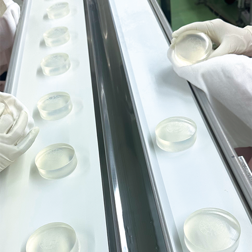 検査では、pHや揮発分に加えて疵(或いはキズ)や変形の有無、透明度についてチェックするため、ロットごとに最終検査をおこないます。合格したものだけを製品として出荷、みなさまのもとにお届けします。