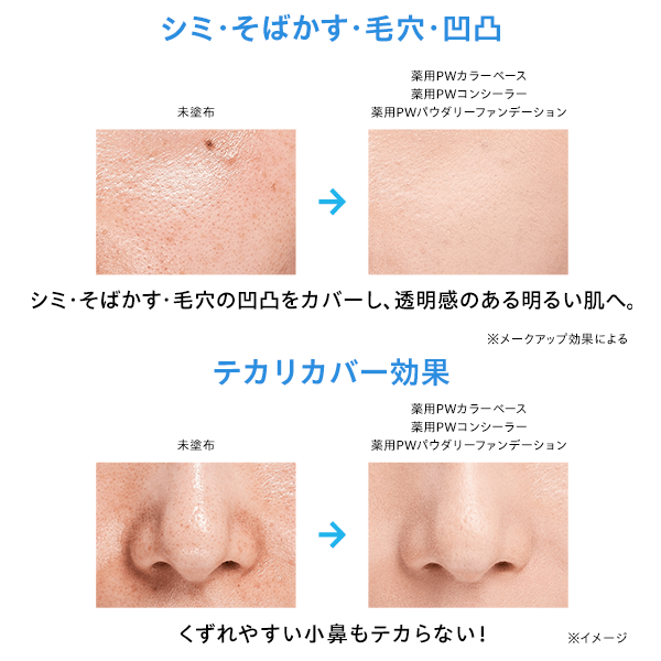 シミ・そばかす・くすみ・毛穴をカバーする、美白メークアップ効果