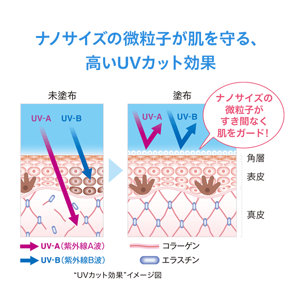 ナノサイズの微粒子が肌を守る、高いUVカット効果