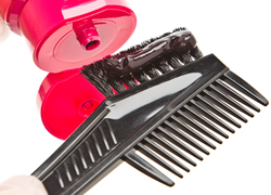 2. ブラシ部分にカラートリートメントをたっぷりのせます。
