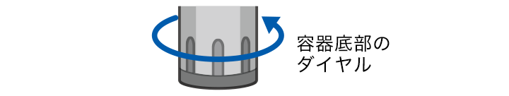 ・初めて使用する際は、蓋を外し、筆先に液が出てくるのを確かめながら、容器底部のダイヤルを右回りにゆっくりと回してください。(10~20回転が目安です。2回目以降は少しずつダイヤルを回し、量を調節します。)