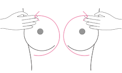 2. バストを外側のラインに沿って大きくさすり上げます。手のひらでバストを持ち上げるようにします。