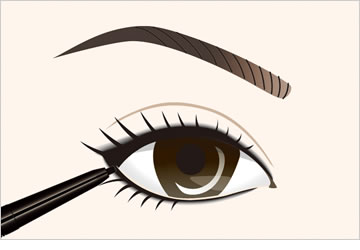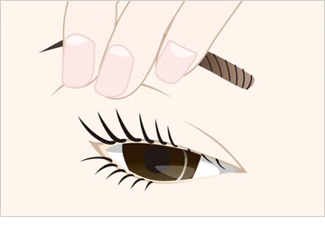 - 目頭から目じりに向かって、まつ毛の間を埋めるように描いていきます。少しずつ書き足すようにゆっくりと描いていくと、うまく引くことができます。