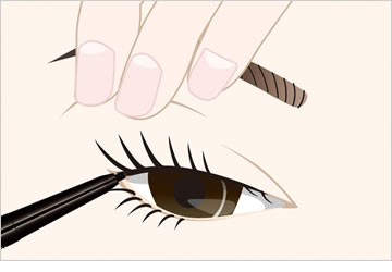ペンシルを左右に小刻みに動かしながら、まつ毛の間の隙間を埋めましょう。このひと手間が、わざとらしくなく、印象的な目もとを演出するアイラインの鍵となります。